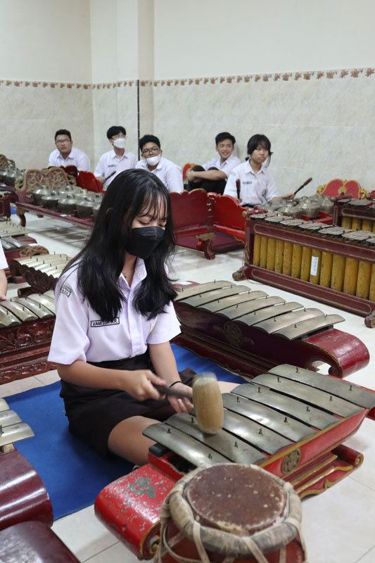 Oh ya, guyss… Selain ekstrakurikuler pemegang posisi peminat terbanyak pertama dan ketiga, ada satu lagi nihhh kegiatan yang nggak kalah ramai peminatnya! Ekstrakurikuler ini tak lain dan tak bukan adalah karawitan, si paling slendro dan pelog. Karawitan juga mengadakan seleksi pada hari yang sama dengan ekstra band, yaitu hariJumat (04/08/2023) dengan jumlah peserta yang hampir mencapai angka 30. Nantinya, calon murid yang terpilih akan menjadi bagian dari Tim Khusus Gamelan di bawah bimbingan Sang Dalang SMAK Santo Paulus, Bapak Sumarno!