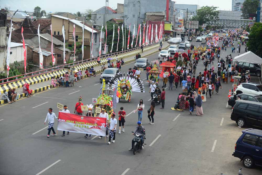 Di tengah ribuan sorotan mata, siswa-siswi SMAK St. Paulus Jember pun tak mau ketinggalan. Mereka menyapa warga dengan kreasi becak dari pelbagai suku, yakni suku Dayak, Papua, Betawi, Madura, Bali, Jawa Timur Brawijaya dan Tionghoa. Becak sederhana serasa disulap menjadi keindahan luar biasa yang memanjakan mata siapa pun yang melihatnya. Murid-murid menyambut acara ini dengan semangat dan antusias. Walau panas terik, tak membuat mereka terlihat lelah. Walau harus berjalan jauh, tak membuat semangat mereka luntur. Tidak kalah menarik, guru-guru pun ikut pawai diiringi musik yang membuat semuanya ikut berjoget gembira.