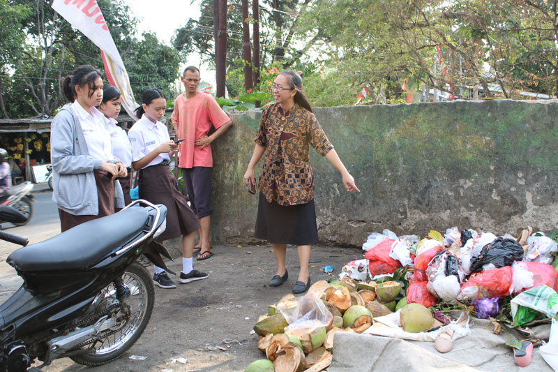 Tema yang diambil Bu Dina dalam kegiatan ini ialah “Menelusuri Jejak Sampah”. Murid-murid diajak untuk mengamati sampah-sampah yang bertebaran di sepanjang jalan menuju ke TPA. Ternyata, banyak juga lho gaiss sampahnya…Bahkan, di sungai pun juga banyak sampah yang terlihat. Meskipun beberapa orang taat dan membuang sampah pada tempatnya, sampah-sampah tersebut pada akhirnya juga akan masuk ke TPA. Jadi, yaa memang susah gais kalau kita mau menjaga lingkungan..