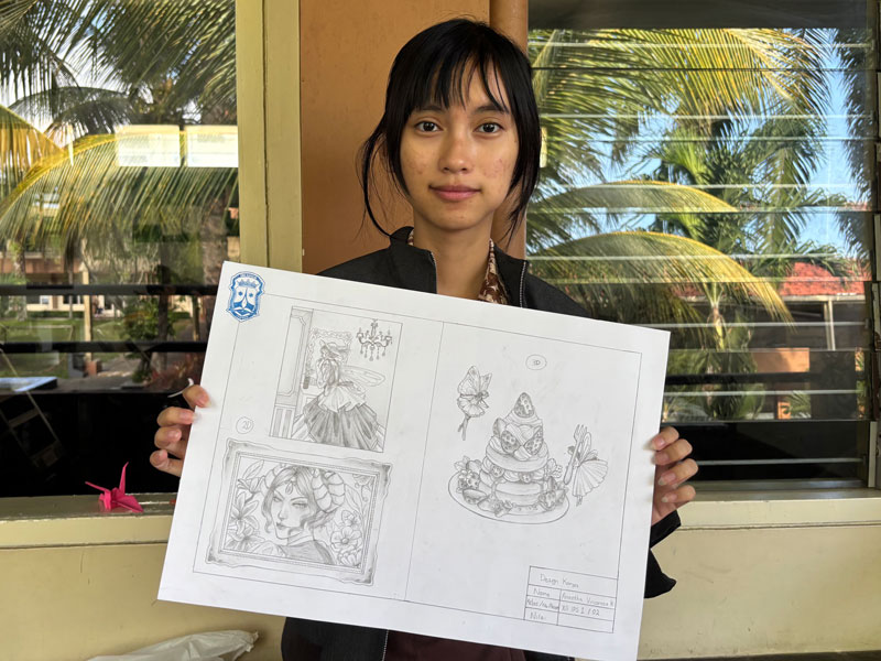 Salah satu murid kelas XII IPS 1 yaitu Anantha Vincarosa Khoe atau yang biasa dikenal dengan sebutan Anantha sudah mulai menggambar karyanya lho! Bagus banget lagi, kira-kira apa ya suka duka membuat karya ini menurut Anantha? “Menurut saya, dukanya bingung mencari ide, tidak tahu mau menggambar apa. Tapi lebih banyak sukanya karena menurut saya seru bisa berkarya seperti ini,” ucap Anantha.