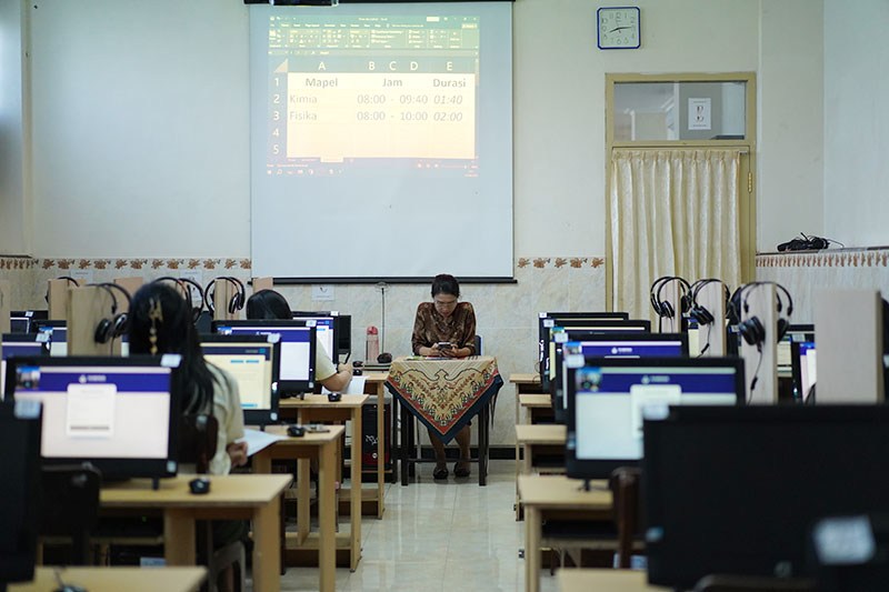 Ngapain aja sih saat simulasi? Wah, jangan kira mereka cuma duduk manis saja! Para peserta OSN langsung diberi arahan dan petunjuk untuk mengerjakan soal-soal seperti saat lomba yang sebenarnya.