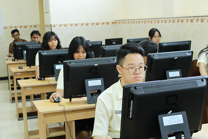 Bagaimana yah persiapan mereka untuk menyambut ANBK ini? Kita mulai dari yang si paling stress dulu nih yahh, biar kebawa gitu suasananya. Hahaha…“Lebih ke nyiapin mental sihh buat baca banyak huruf terus juga angka,” ujar Felicia Maymondo, murid dari kelas XI IPS 1. Selain itu, Bapak Antonius Willy Setiawan, S.Si., alias proktor utama ANBK juga gamau kalah dong. Beliau juga ikut bagiin perasaannnya selama mendampingi anak-anaknya selama simulasi! Emang the real buah tak jatuh dari pohonnya yah ges yahh! “Lebih ke fokus di hal-hal teknis sihh yaa, kayak mastiin supaya jaringan internet, dan aplikasi yang digunakan udah sesuai sama petunjuk dari pusat, terus juga mastiin para murid biar bisa terbiasa mengoperasikan aplikasi biar prosesnya bisa berjalan dengan lancar,” ujarnya. Widihh! baru simulasi aja udah gini yah, ga kebayang sih, gimana keseruan ANBK di hari-H-nya!