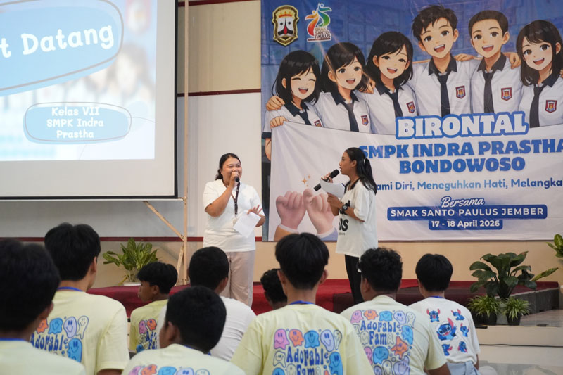 Bagi adik-adik dari SMPK Indra Prastha, hari Jumat (17/04/2026) dan Sabtu (18/04/2026) kemarin menjadi momen yang penuh makna di SMAK Santo Paulus Jember. Suasana sekolah seketika berubah meriah dengan kehadiran murid-murid dari SMPK Indra Prastha Bondowoso yang datang untuk mengikuti kegiatan Birontal alias pembinaan rohani dan mental.