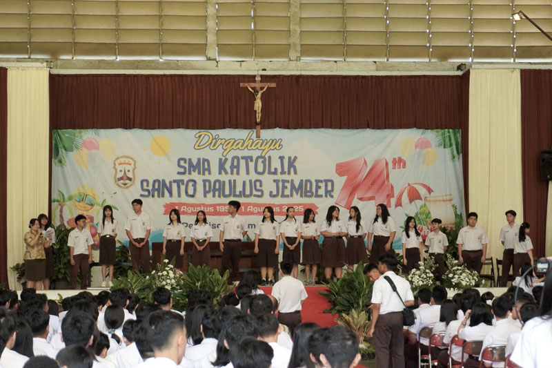 Jumat (08/08/2025) kemarin, sekolah kami merayakan suatu momen penting lho, guys. Yap, melaksanakan pesta syukur ulang tahun sekolah yang ke-74! Sebenarnya, HUT sekolah kami tepat pada hari Jumat (01/08/2025) yang lalu. Namun, karena saat itu kegiatan belajar-mengajar masih dilakukan secara daring, pestanya pun dengan terpaksa diundur. Seseru apa sih pesta perayaan HUT sekolah kami? Let’s find out!