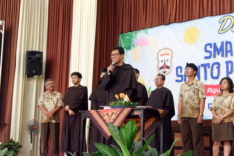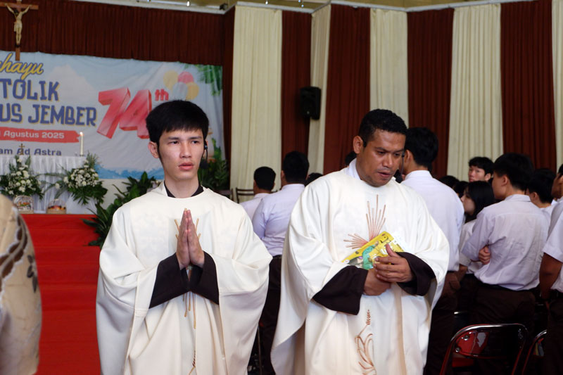 “Dulu kemampuan Romo dalam berbahasa Inggris itu cuma yes no, yes no. Tapi karena Romo mendapat tugas untuk menyambut Romo dari India, Romo otomatis harus belajar bahasa Inggris. Romo juga awalnya tidak begitu bisa berbahasa Jawa namun Romo pernah mendapat tugas untuk memimpin ibadah dalam bahasa Jawa. Maka, Romo belajar pelan-pelan. Romo tidak akan bisa berbuat apa-apa tanpa mau keluar dari zona nyaman. Karena itu, kita semua yang ada di SMAK harus mau untuk menyangkal diri dan memikul salibnya masing-masing,” ujar Romo Thomas dalam homilinya.